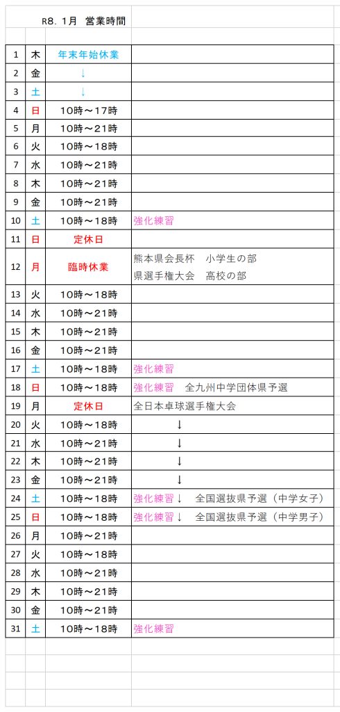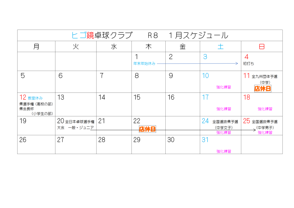 令和8年1月スケジュール