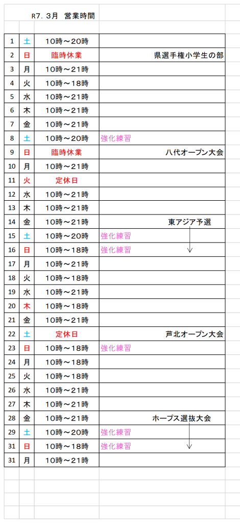 [土曜] 09:00~20:00 [日曜] 9:00~17:00