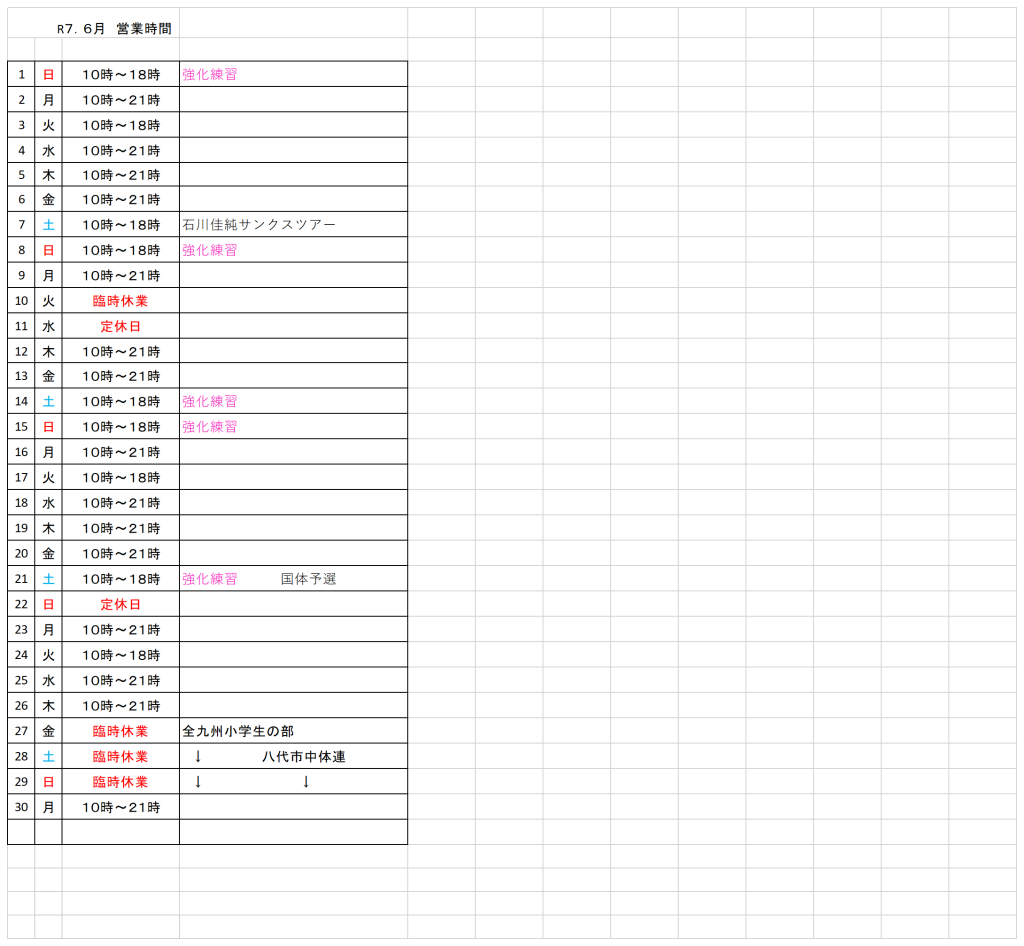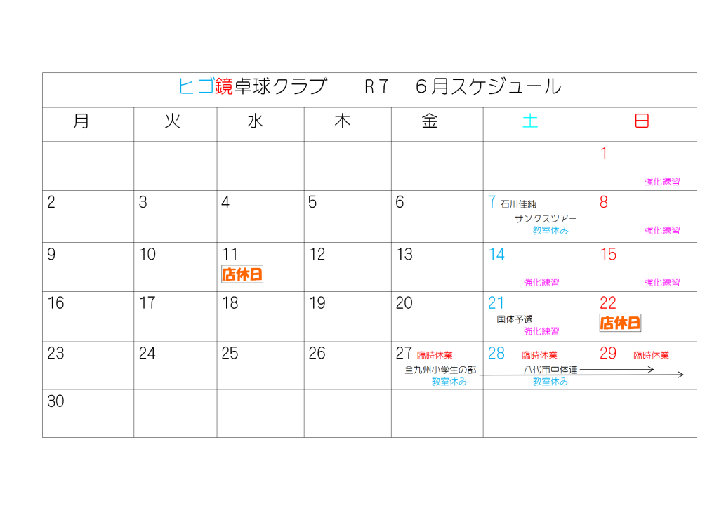 令和7年6月スケジュール