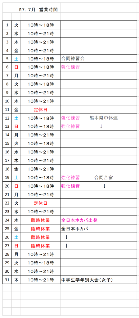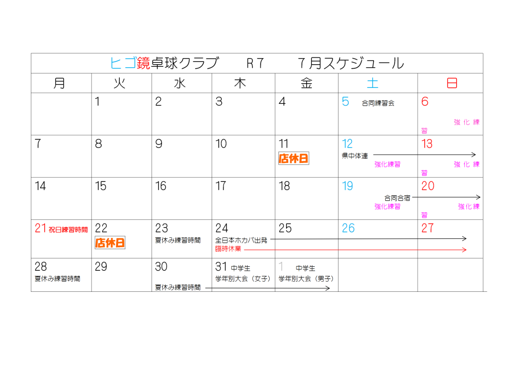 令和7年7月スケジュール
