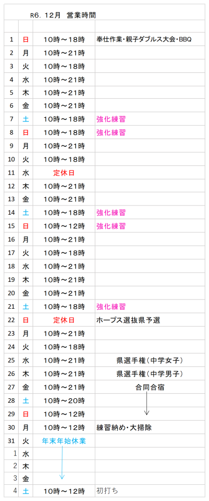 12月のスケジュール