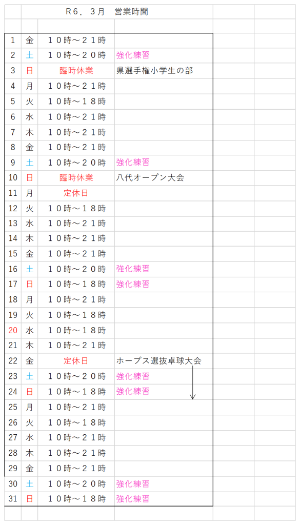 [土曜] 09:00~20:00 [日曜] 9:00~17:00