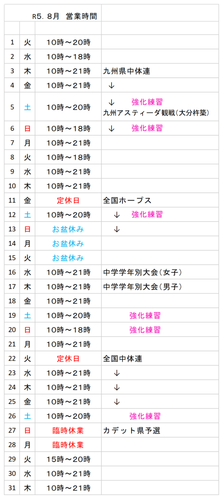 [土曜] 09:00~20:00 [日曜] 9:00~17:00